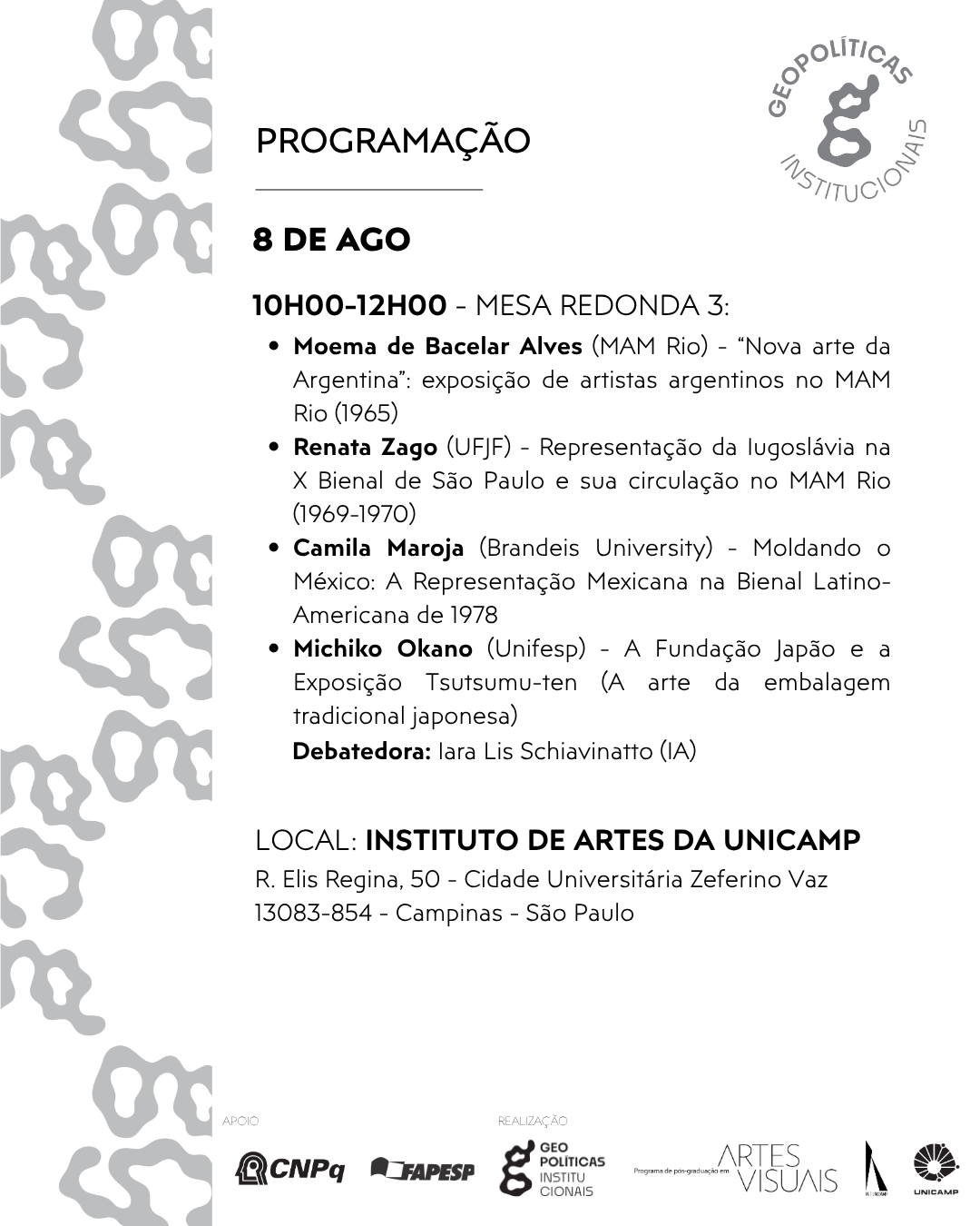 - Renata Zago (UFJF) — Representação da Iugoslávia na X Bienal de São Paulo e sua circulação no MAM Rio (1969–1970)