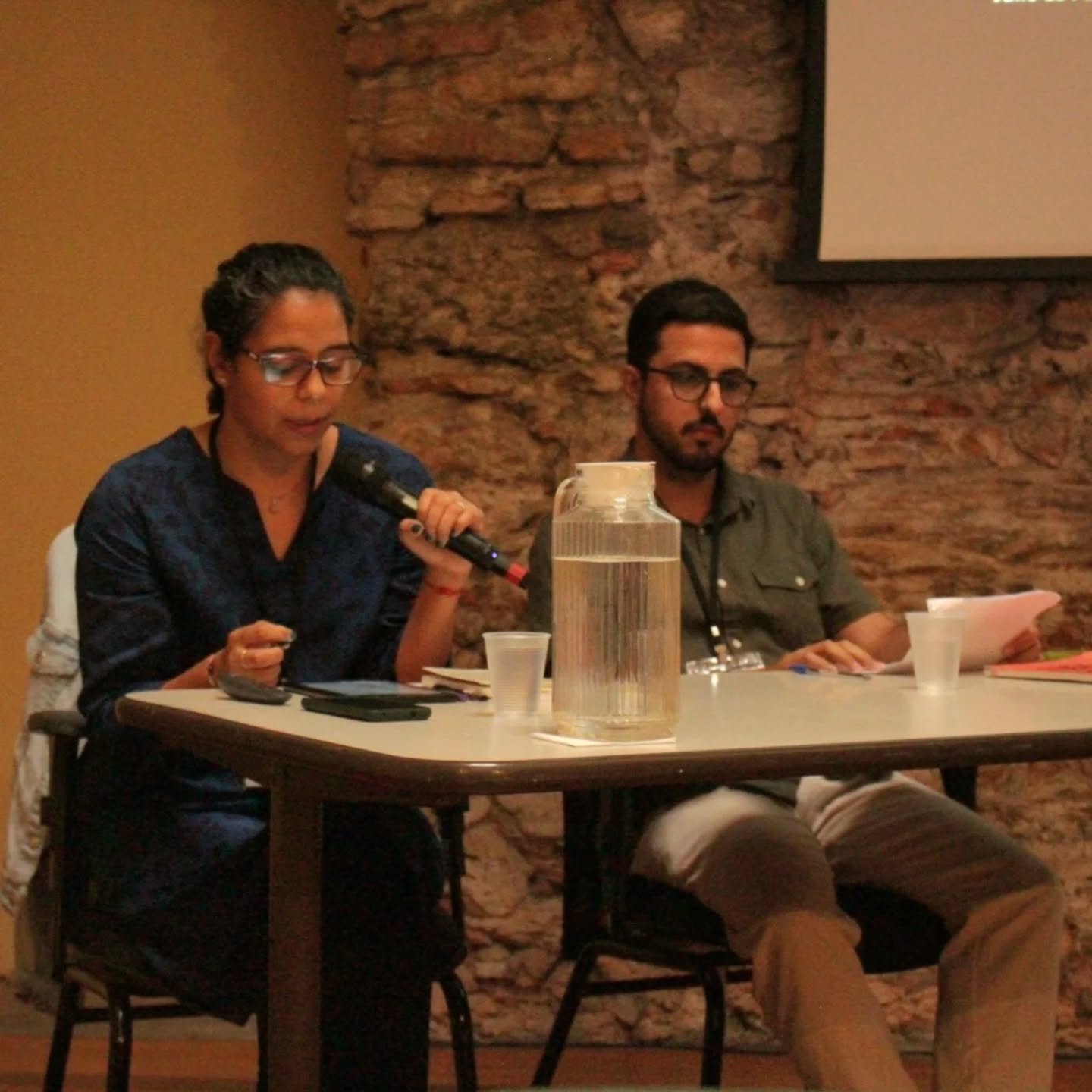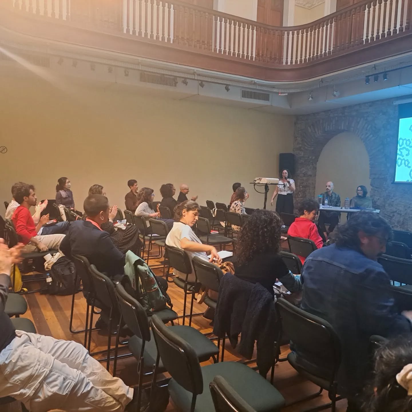 Após o almoço tivemos ainda a mesa redonda “Redes e fluxos: Brasil e América Latina 3” com as falas de Adriana Castellanos Olmedo (Instituto Departamental de Bellas Artes), “Colombia se conecta con el mundo: las bienales de Medellín y Cali (1968-1973)” e Thiago Spindola Fernandes (UFRJ), “’É bonita a festa, pá!’: a experiência da imigração brasileira na Bienal de Cerveira, Portugal, 2024″.